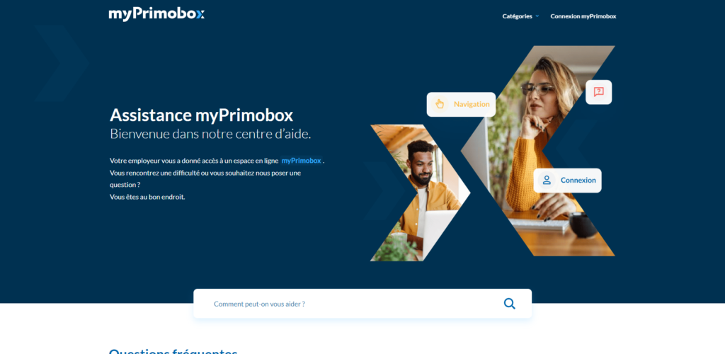 Nous avons donc tenu à refondre totalement le centre d'aide en ligne de l'espace personnel myPrimobox. Accessible 24h sur 24 et 7j sur 7, depuis un ordinateur ou un mobile, il permet aux salariés utilisateurs de myPrimobox de trouver les réponses à leurs questions en cas de difficulté. Les explications y sont présentées sous forme d'articles détaillés pas à pas.