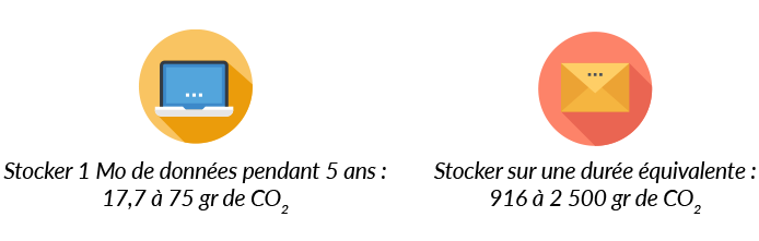 En revanche, pour un classement papier d’une durée équivalente, on compte entre 916 et 2 500 grammes de CO2, en considérant l’espace physique que cela nécessite.