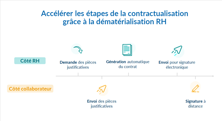 Pour contrer les absences au pied levé, les entreprises ont le choix entre le recours aux compléments d’heures et les recrutements en contrats temporaires. Dans ce second cas, les embauches doivent être conclues rapidement, parfois en quelques heures. Une fois le candidat sélectionné, il faut lui faire signer son contrat de travail au plus vite. Les services Ressources Humaines se heurtent alors aux lenteurs liées à la gestion papier du processus de contractualisation.